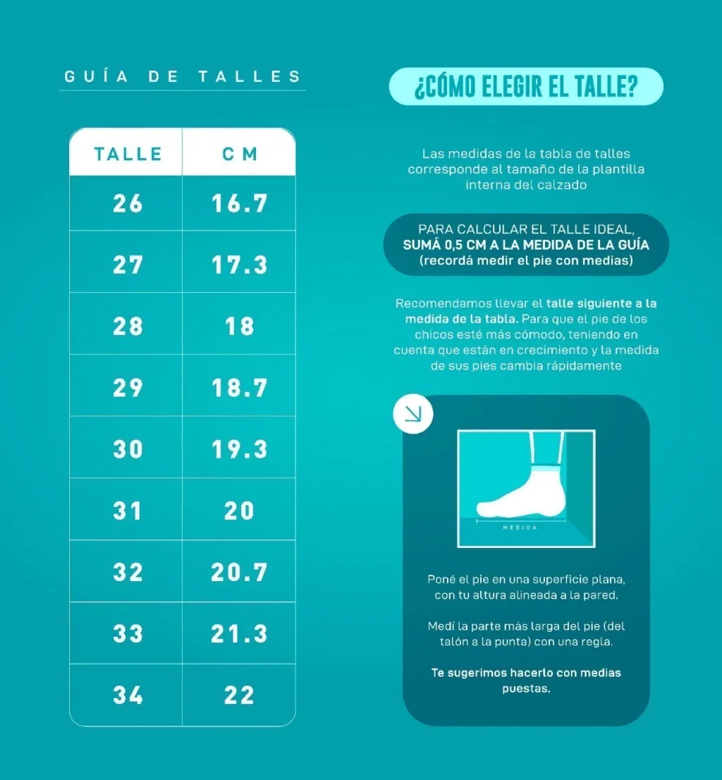 Talles del 26 al 34