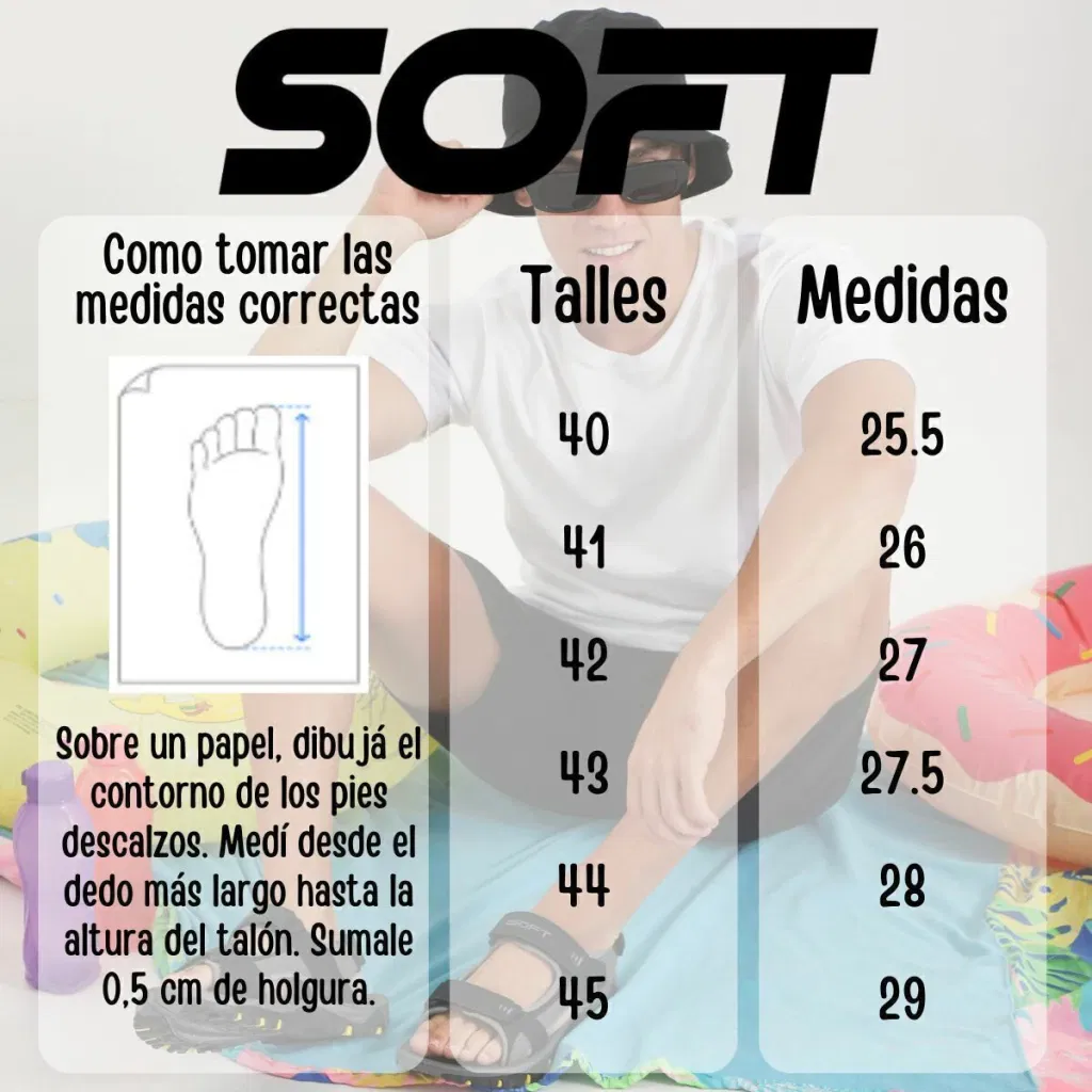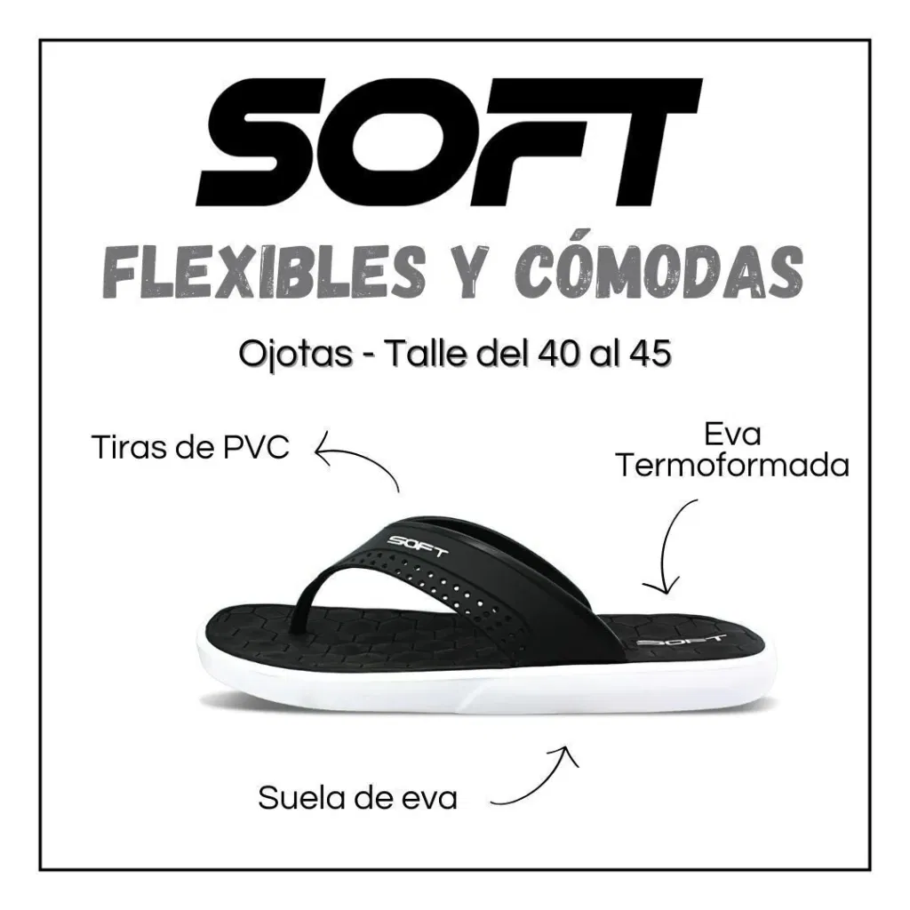 Ojotas marca Soft anatómicas.Tira: pvcSuela: evaTalle del 40 al 45