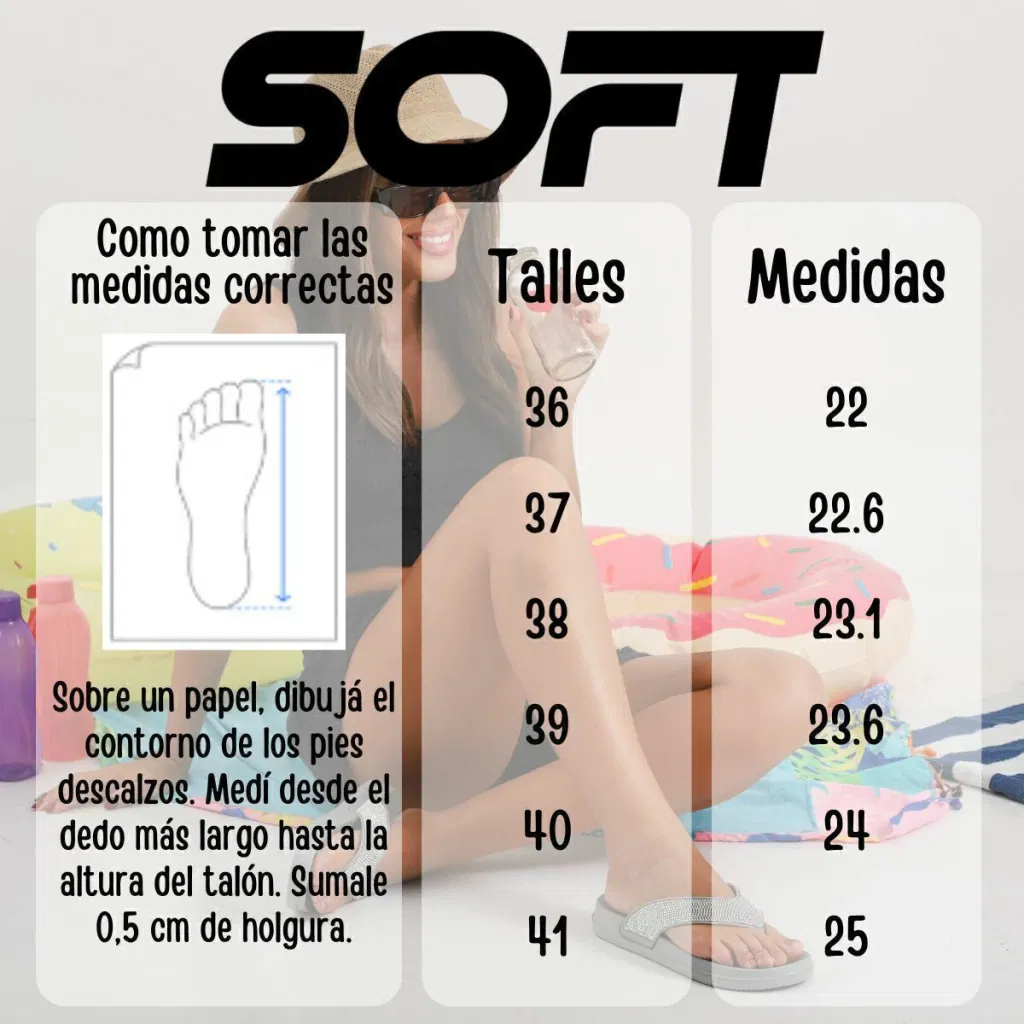 Ojota liviana con tiras de brillo. Sandalias Playeras Moda marca Soft