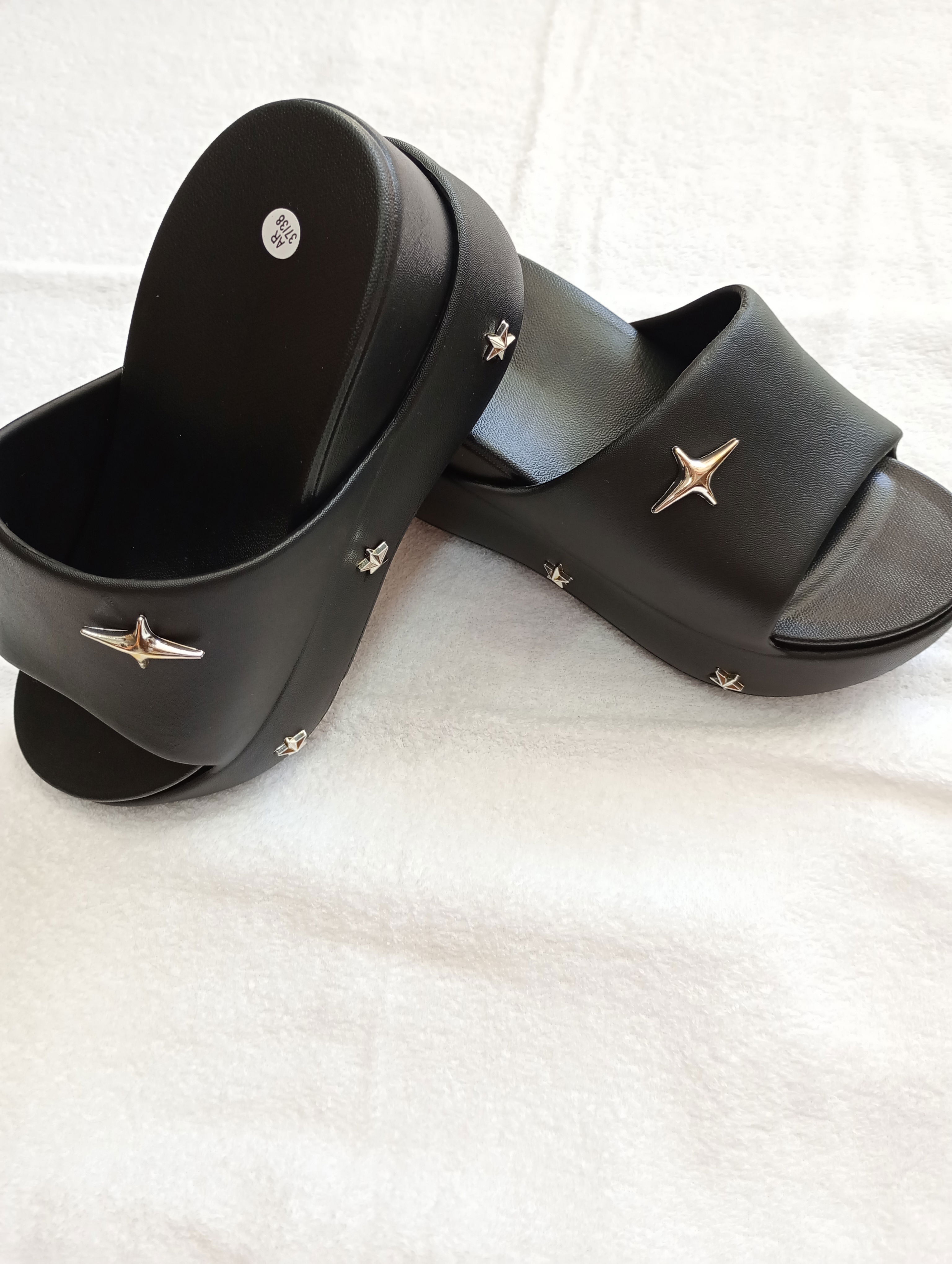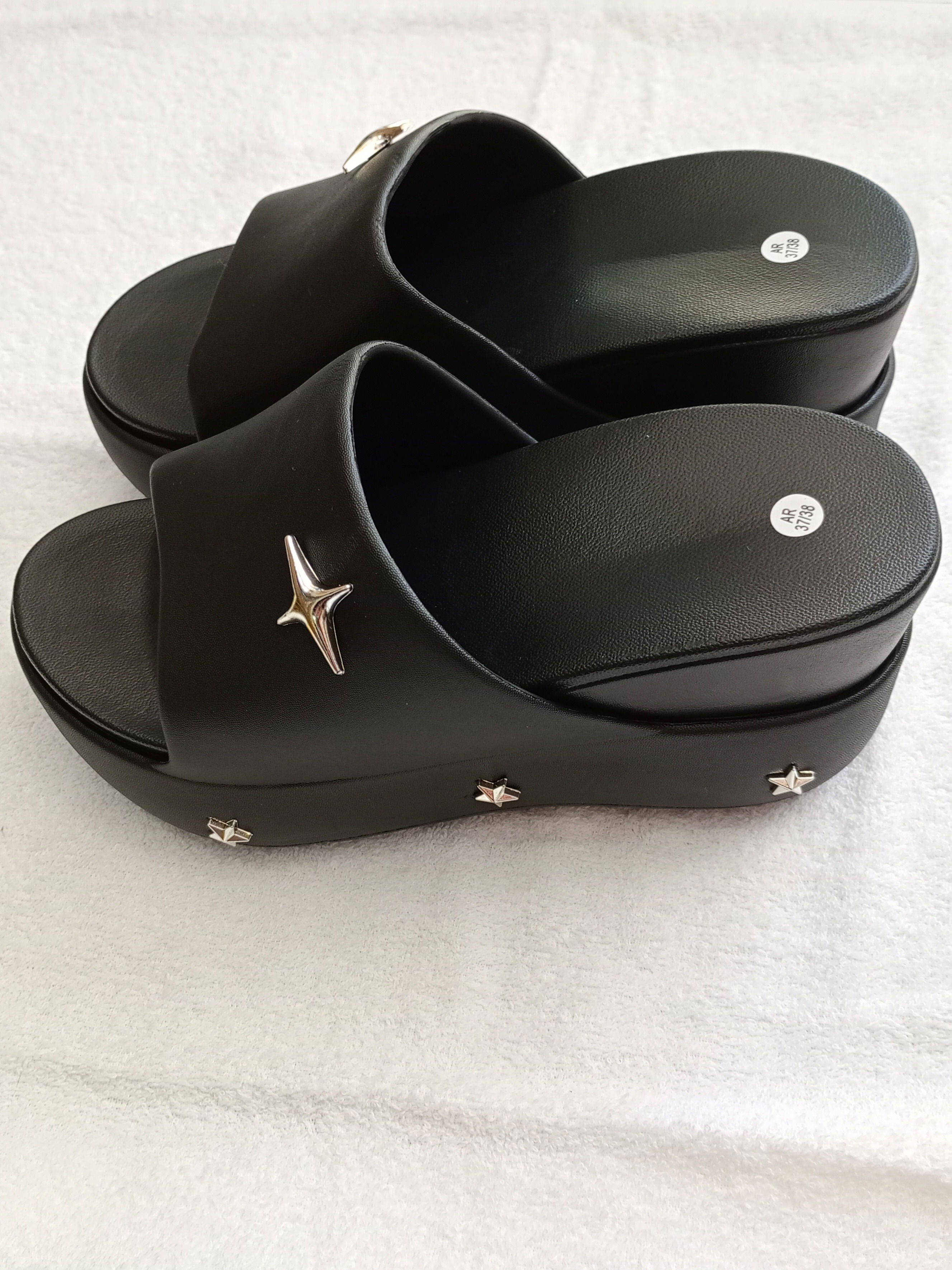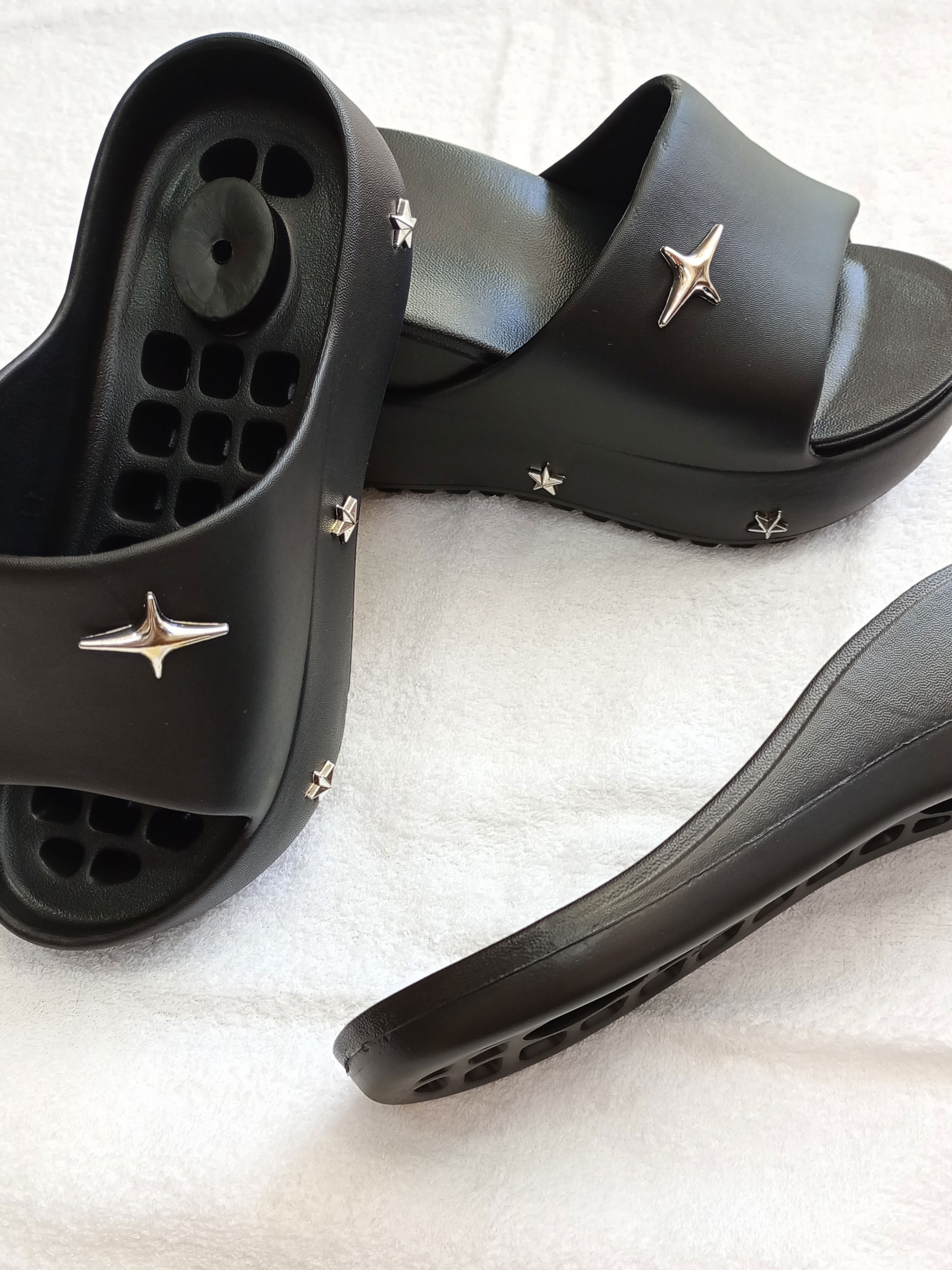 Zueco marca Gummi Mujer Gomón Eva plataforma con tachasColor Negro con apliques.